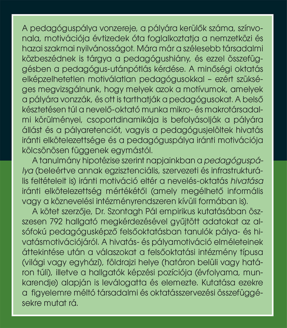 Szontagh Pál: Miért (nem) leszek pedagógus? Hivatás- és pályamotiváció a Kárpát-medencei pedagógusjelöltek körében