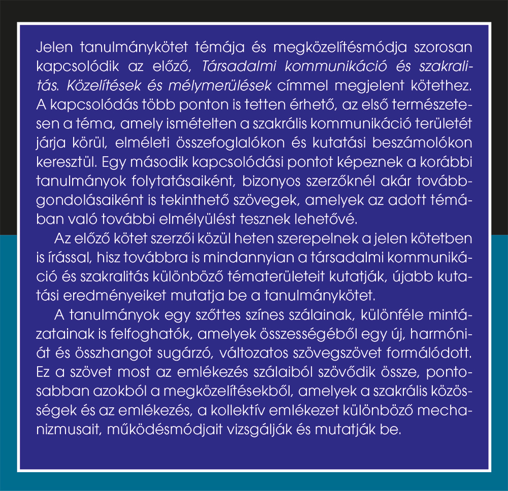 Korpics Márta, Spannraft Marcellina (szerk.): Szakrális közösségek – kollektív emlékezet